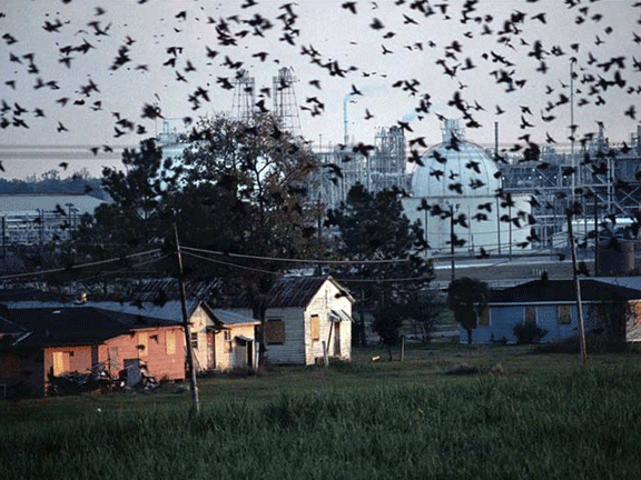 The spirit of the two images above could not be more disparate. In one, the sun sets on Rubber Duck, an installation in the Netherlands by artist Florentijn Hofman. His site proclaims: "the Rubber Duck knows no frontiers, doesn't discriminate people and doesn't have a political connotation." Rubber Duck has "traveled"-- or rather been reproduced around the world, including in the US (although with some controversy). The other photograph shows a somber image of a Lousiana town near a chemical plant producing Polyvinyl Chloride, the material from which Rubber Duck is made.