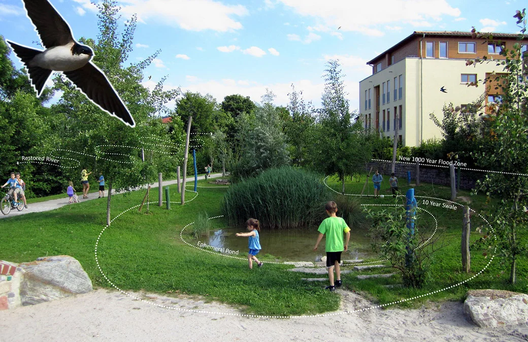 Arkadien Winnenden by Ramboll Studio Dreiseitl showing multi-functional green infrastructure.