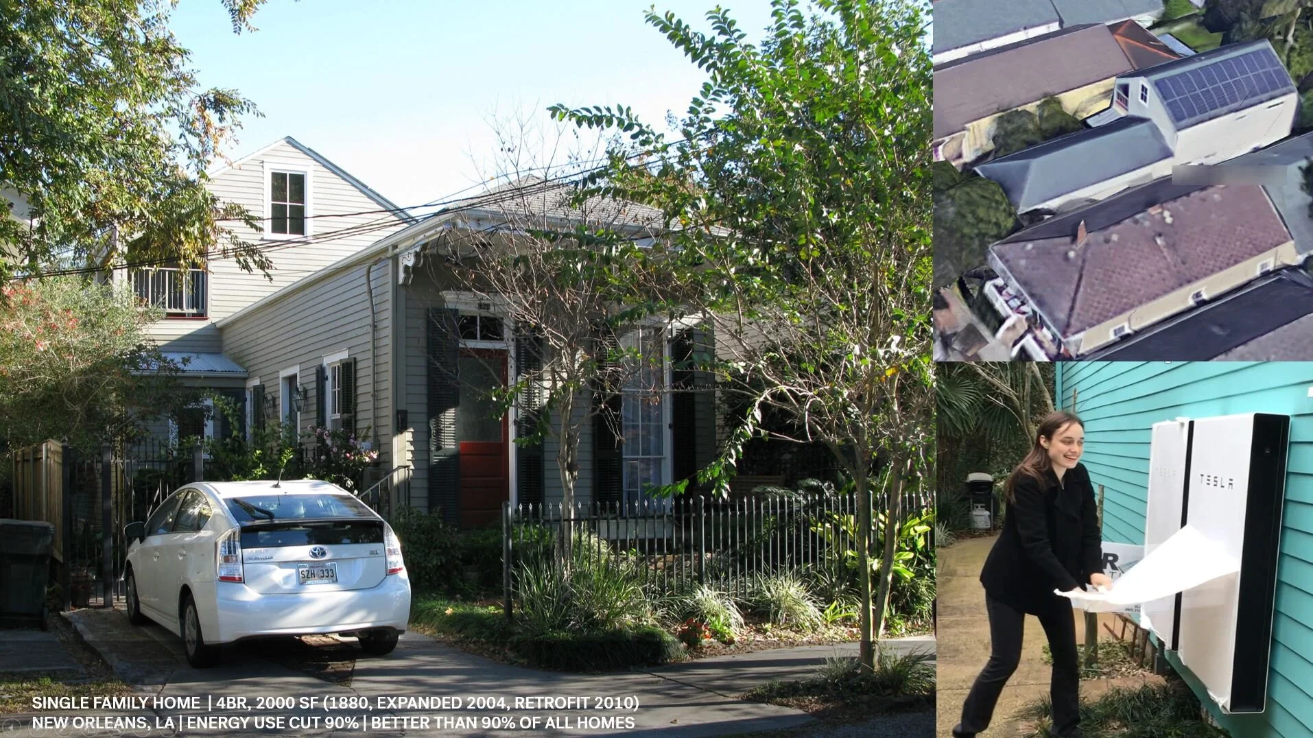 Z himself lives in a shotgun camelback building in New Orleans that without intervention, one might look at as a notoriously poor performer in energy performance. In 2010 his family did a sweeping retrofit, taking it from spending $2500 a year on utilities to $250. They left the exterior largely alone, but fixed the insulation, added solar, added battery storage, and were able to cut energy usage by nearly 90%.'