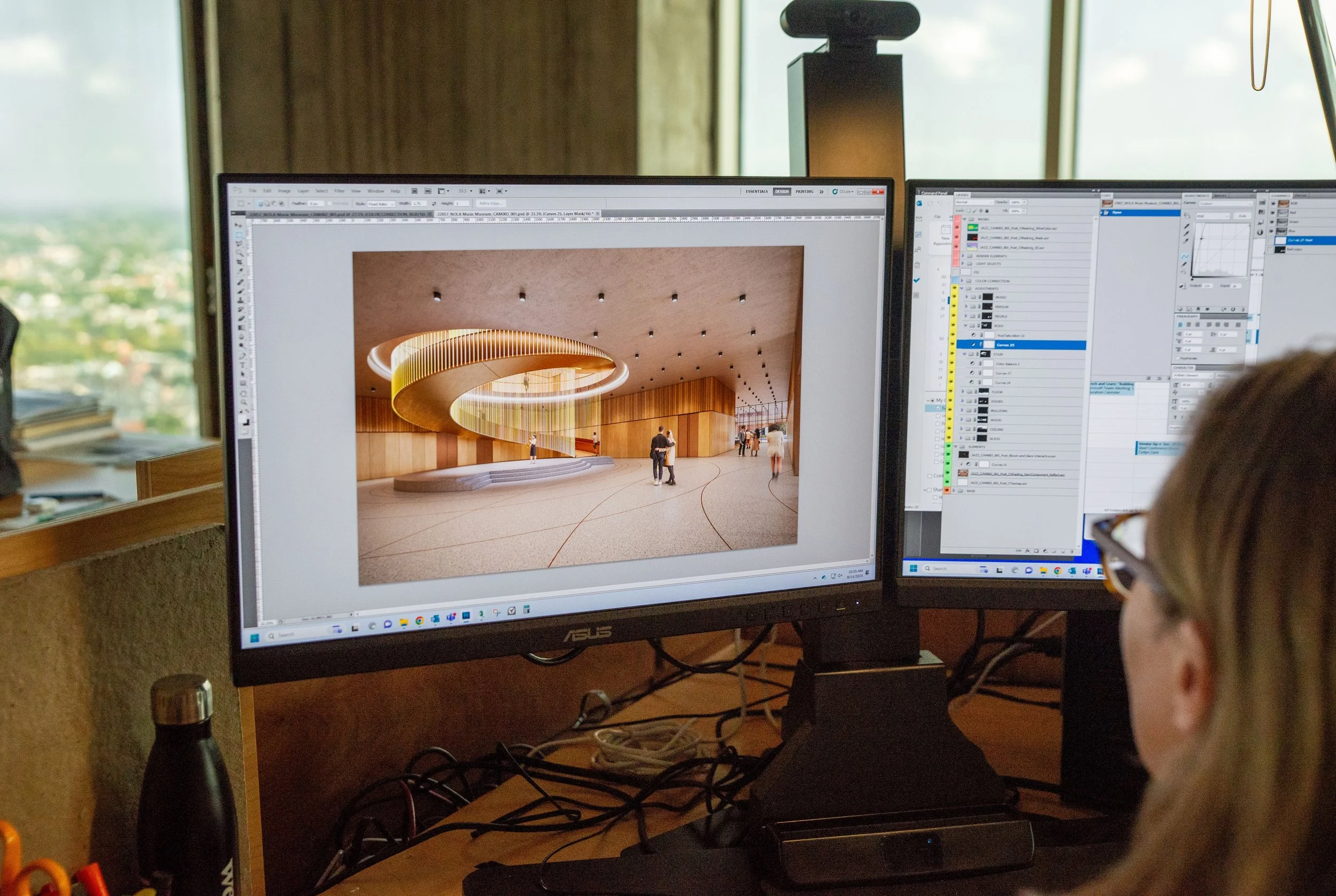 It was at a marketing visualization-based firm that Sheena honed her skills and developed an appreciation for the art of architectural storytelling. "We were really big into this idea that the image has to tell a story, and that story is talking about the architecture," she explains. In collaboration with architects, Sheena crafts visuals that echo the architects' goals and aspirations for the project. Her work is a coordination between technical precision and artistic expression, resulting in images that speak volumes about the architect's vision. "You'll make an image, and you'll show it to the architects, and they'll say, 'Oh my gosh, you really captured what we were trying to do,'" Sheena says proudly.