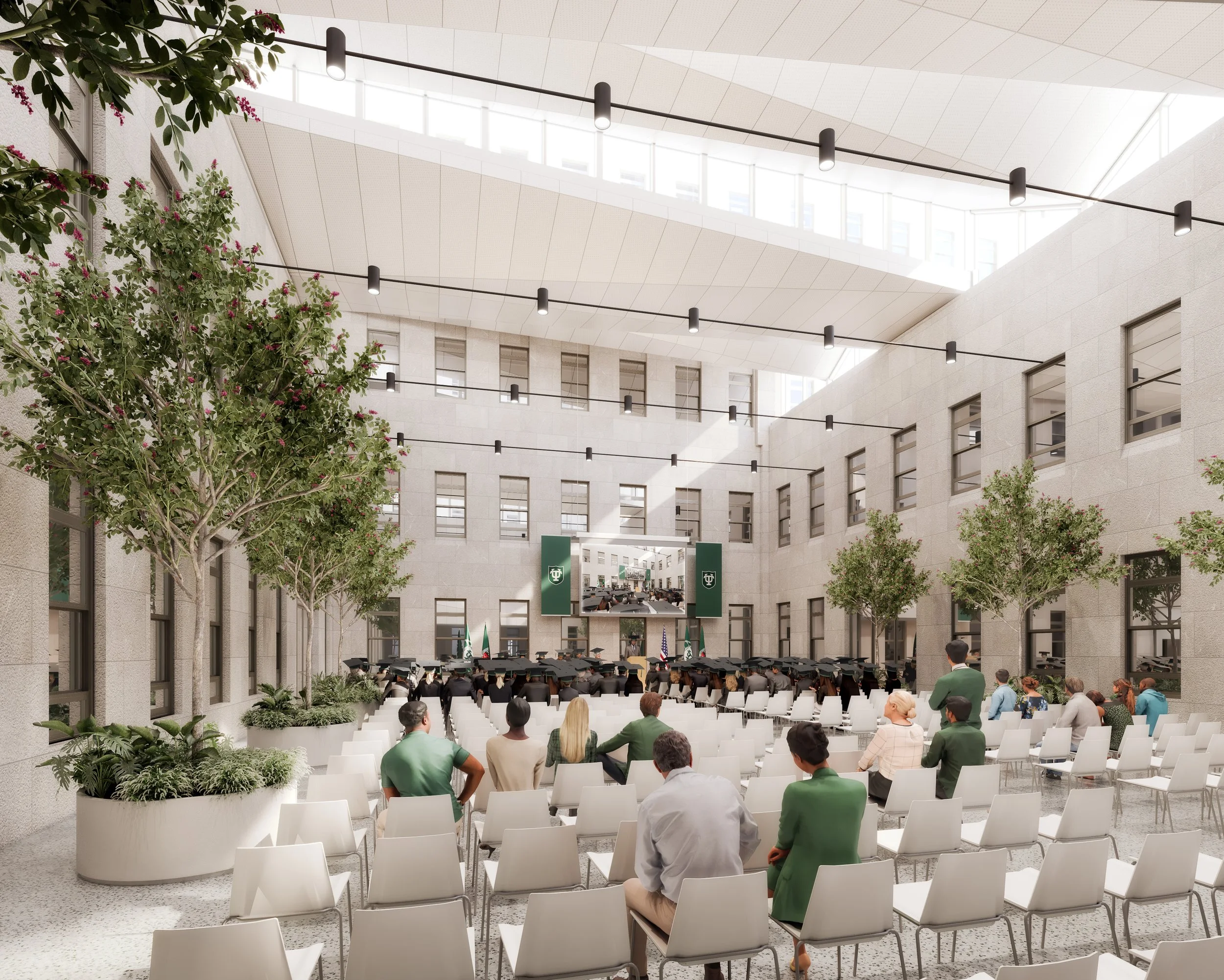 Sheena rendering images of plans for the proposed Lousiana Music and Heritage Experience Museum in New Orleans, Louisiana.