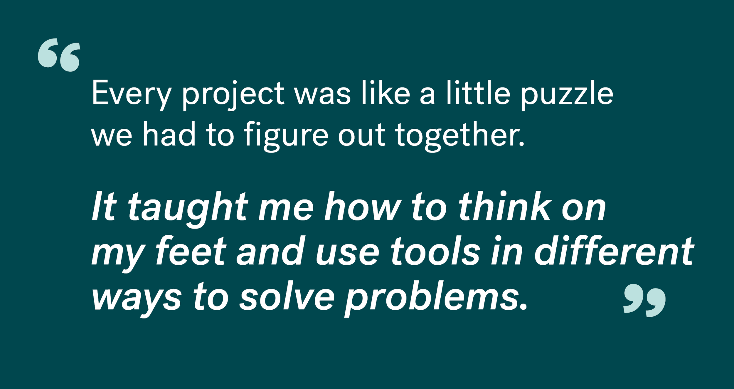 Working in the shop reinforced the idea that design decisions are often discovered through process rather than predetermined outcomes, an approach that continues to inform how Chris approaches projects today.